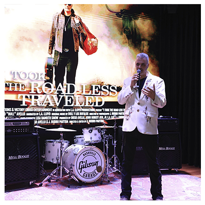 Diego's story and achievements are being narrated in the documentary "I took the Road less Traveled" that chronicles the musical journey of Diego ¨Bull¨ Avello from his small mountain town in Asturias northern Spain to the USA chasing the American dream. The hardships, the victories, the perseverance and the passion for Rock and Roll and the American way of life. Directed by the Texas based production company ¨Penny Rock Productions¨ and presented by ¨L.A. Lloyd Rock 30¨ the film takes place in 3 countries, USA, Mexico and Spain and was filmed in 6 American states.